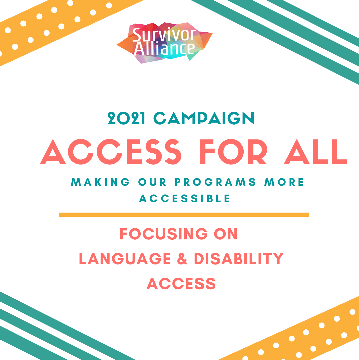 In 2021, we are focused on making our programs accessible to all survivors. We are focusing on language access and disability access.